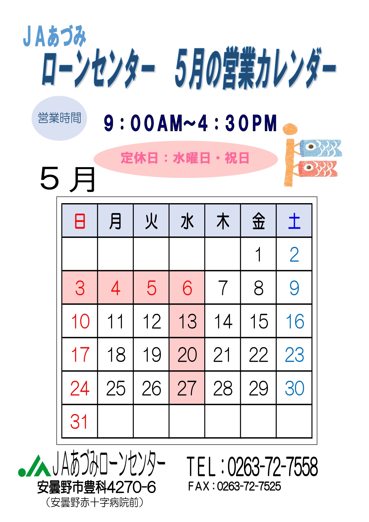ATM営業終了と営業日変更について